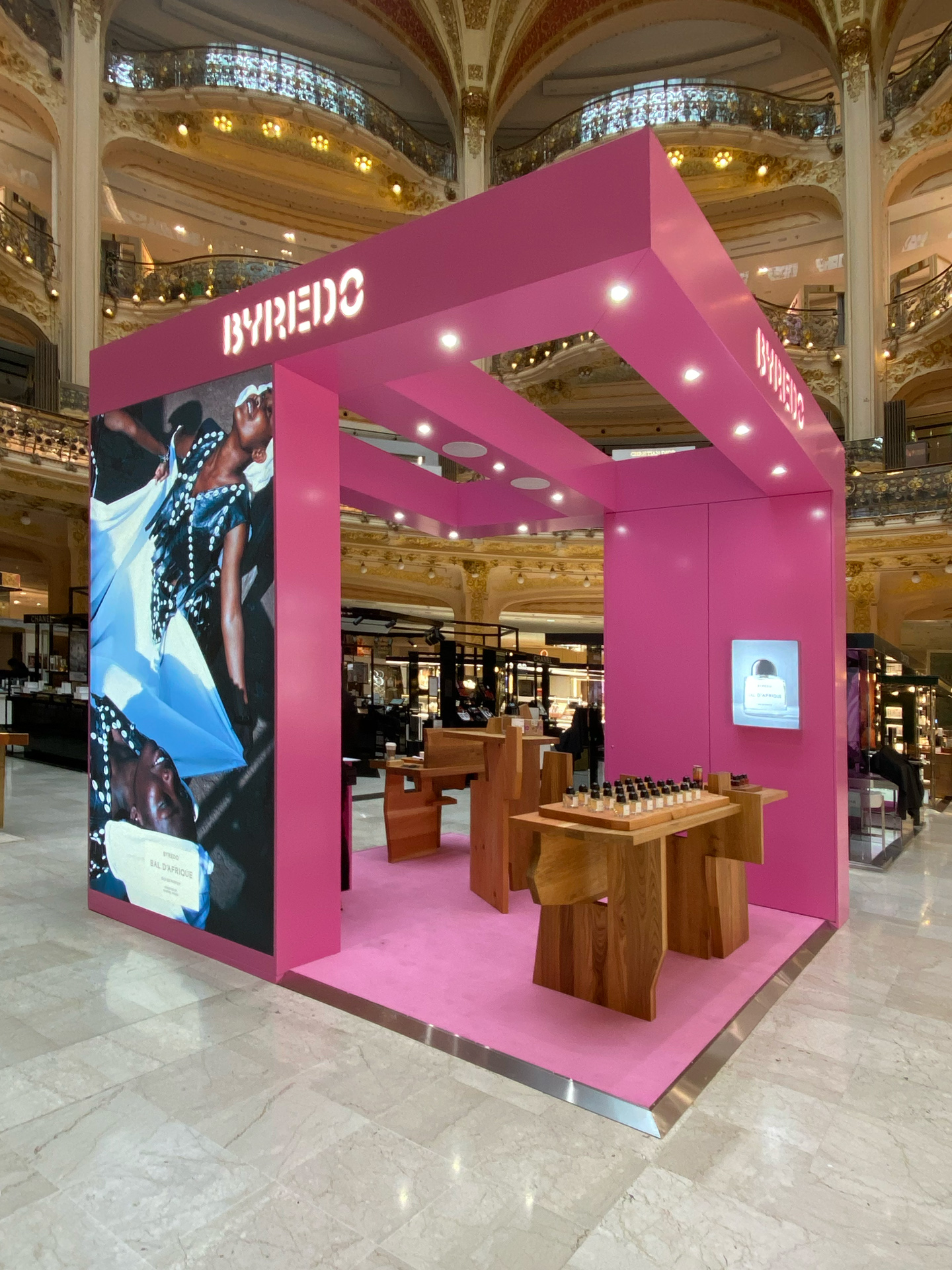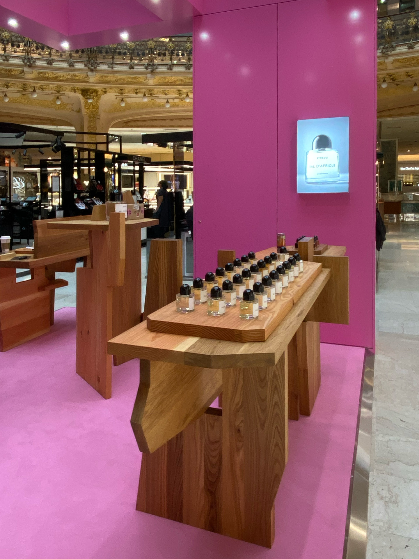 Au début de l’été le nouveau stand de Byredo, une marque de luxe de parfums, a été installé aux Galeries Lafayette à Paris. Groupe MPK est fier d’avoir pu participer à la création de ce pop-up store original et démarqué. Spécialisée dans la conception et la fabrication de PLV et mobilier commercial permanents et semi-permanents, l’équipe du Groupe MPK a su se démarquer pour aboutir à ce superbe résultat. Ce pop-up store offre un design unique et sur-mesure. La couleur originale choisie fait ressortir le stand au milieu de toutes les autres marques de luxe. L’ensemble se base sur un mélange audacieux : l’authentique associé à l’ultramoderne. Une combinaison maîtrisée de mobiliers en bois massif huilé aux éléments laqués rose de la structure, le tout astucieusement mis en lumière, donnant à ce nouveau stand un aspect à la fois chaleureux et original.Un nouveau stand qui n’est pas passé inaperçu…