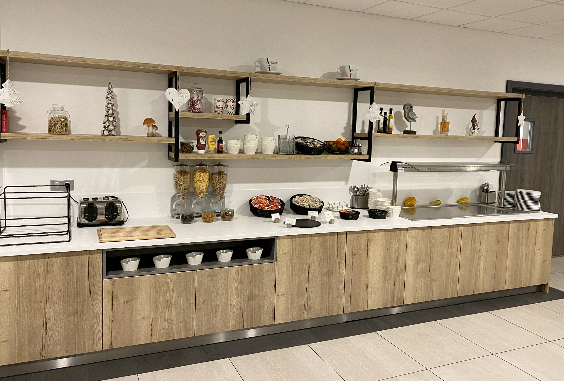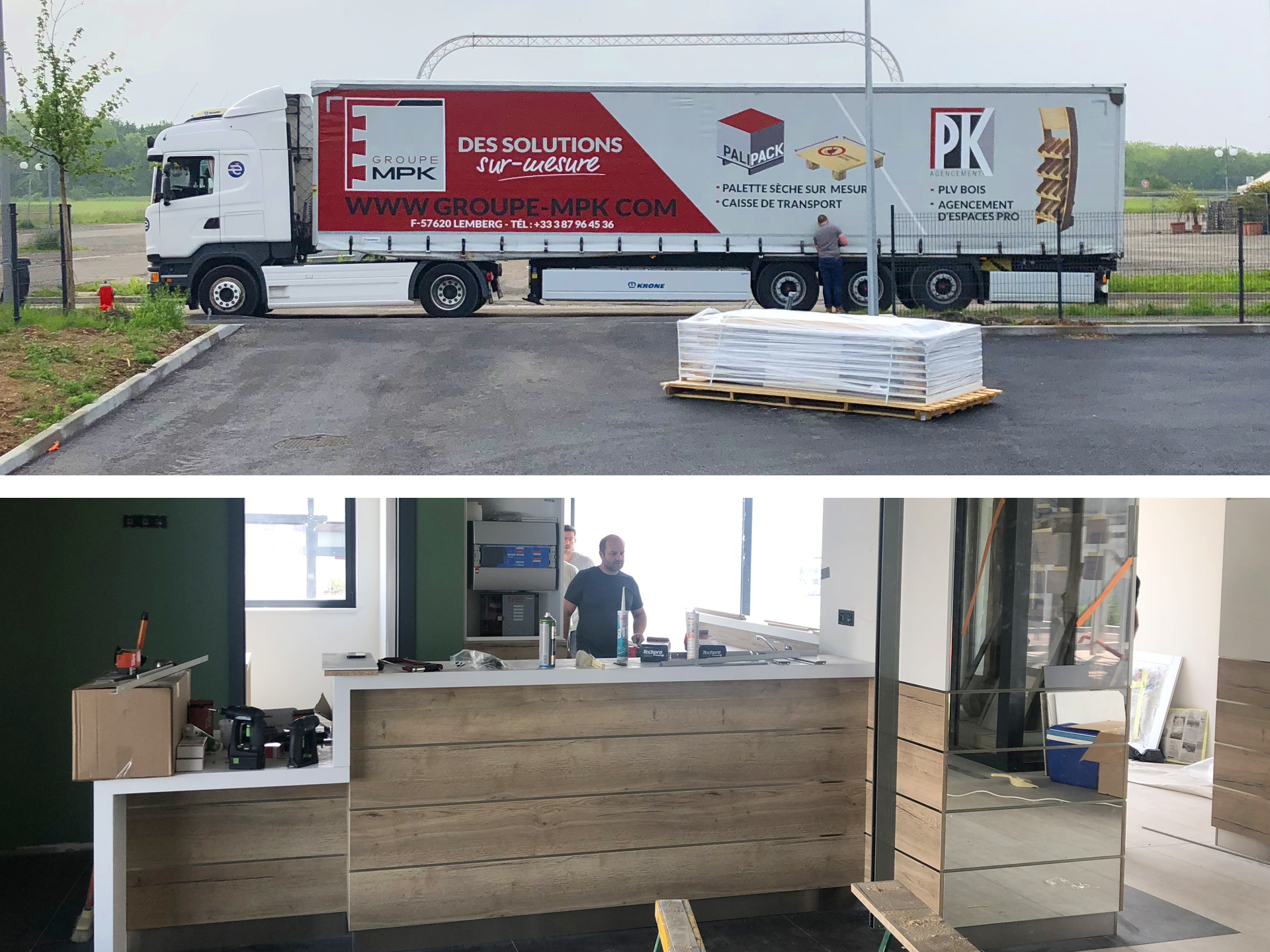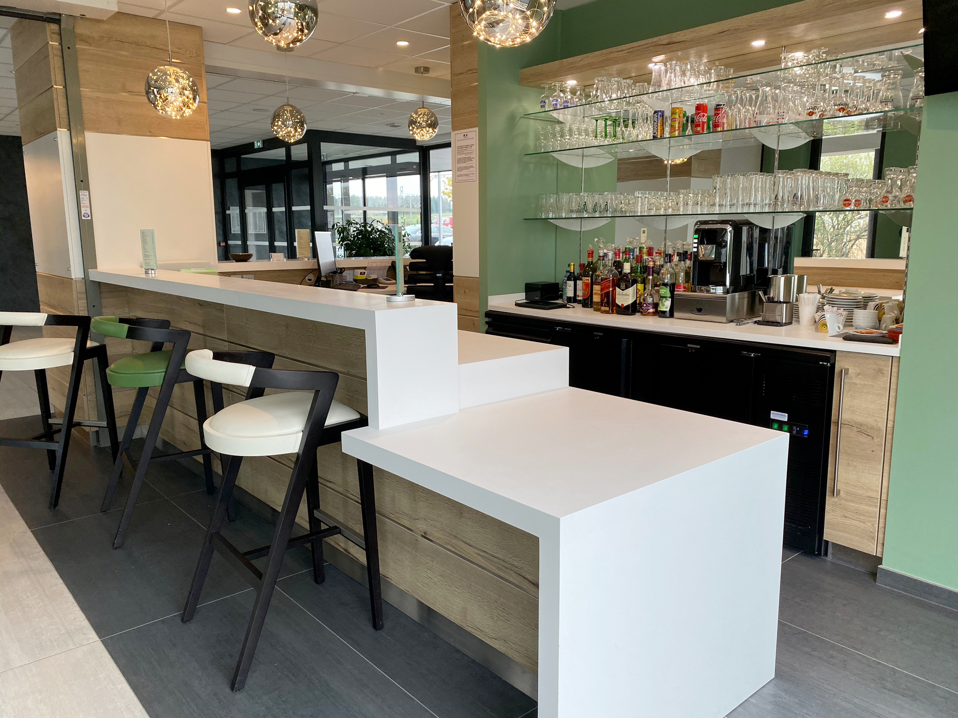 Intégralité des mobiliers et habillages bois réalisés sur-mesure dans nos ateliers à Lemberg (Région Grand Est).