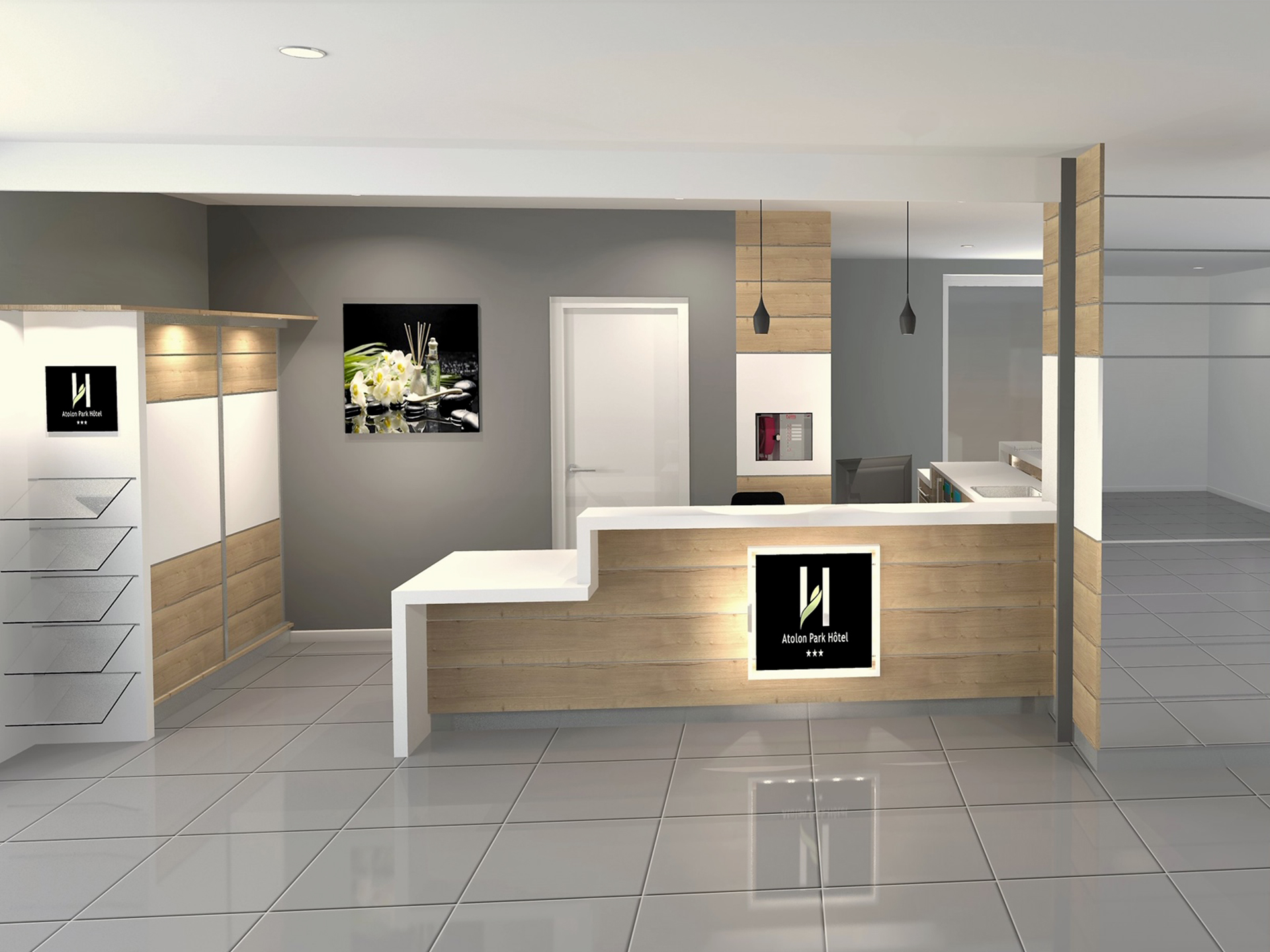 Agencement intégralement étudié et réalisé en 3D pour présentation au client pour validation du projet.