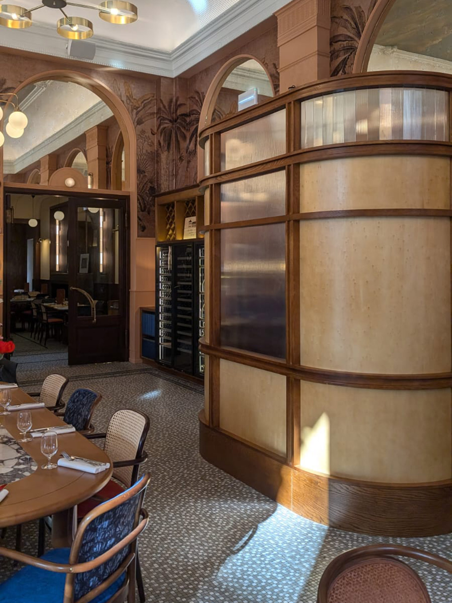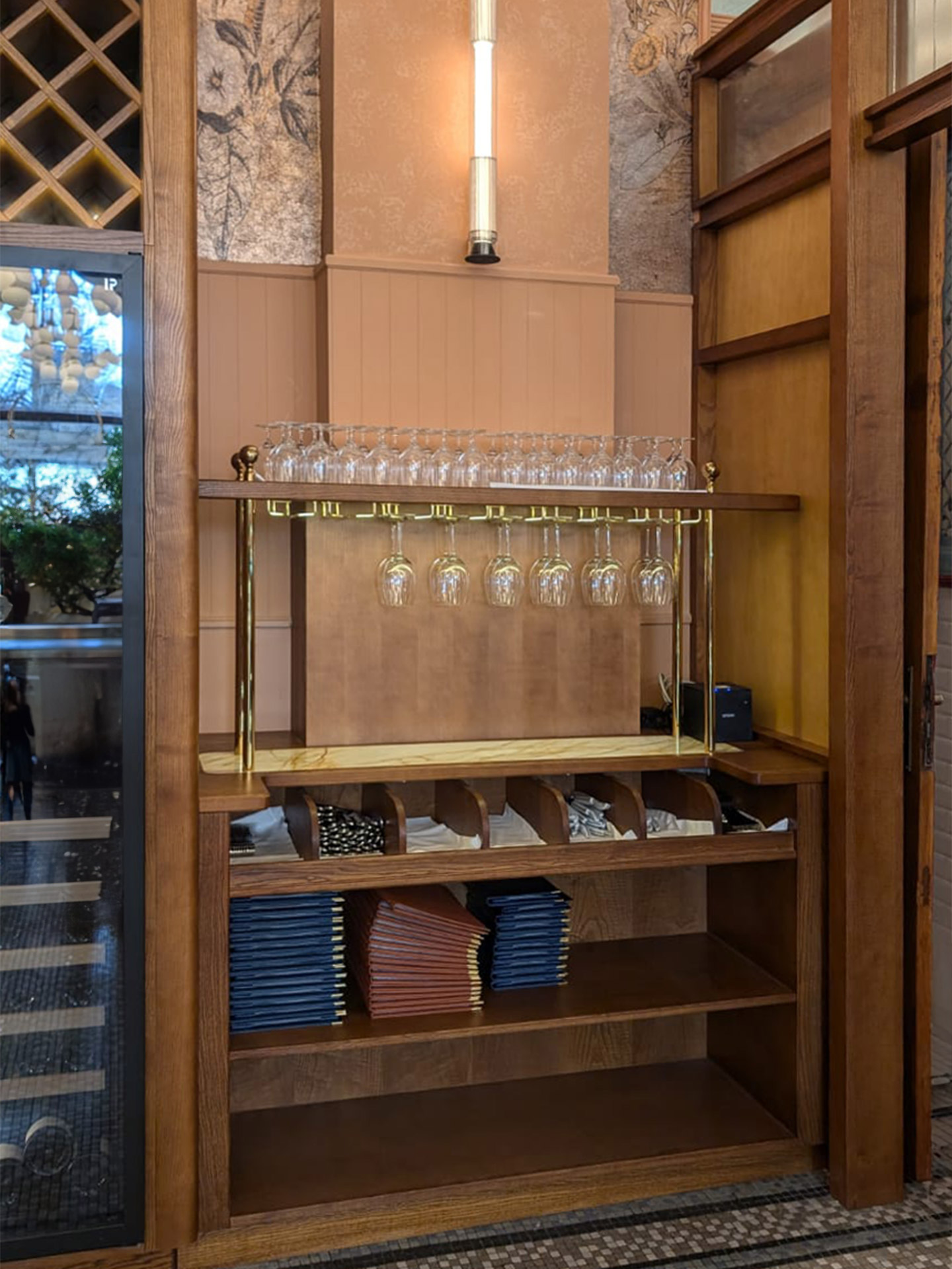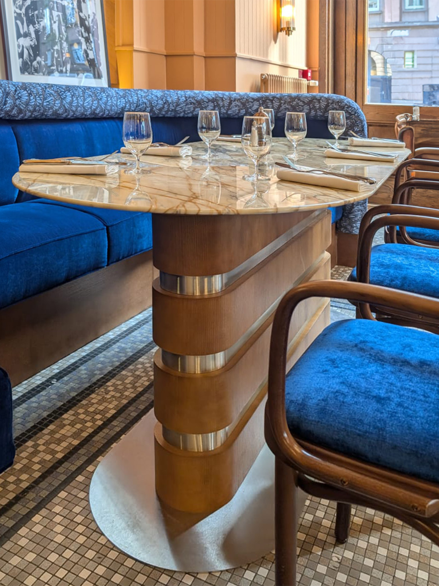 Intégralité des mobiliers et habillages réalisés dans nos ateliers à Lemberg (Région Grand Est) pour la brasserie Louise située à Strasbourg.