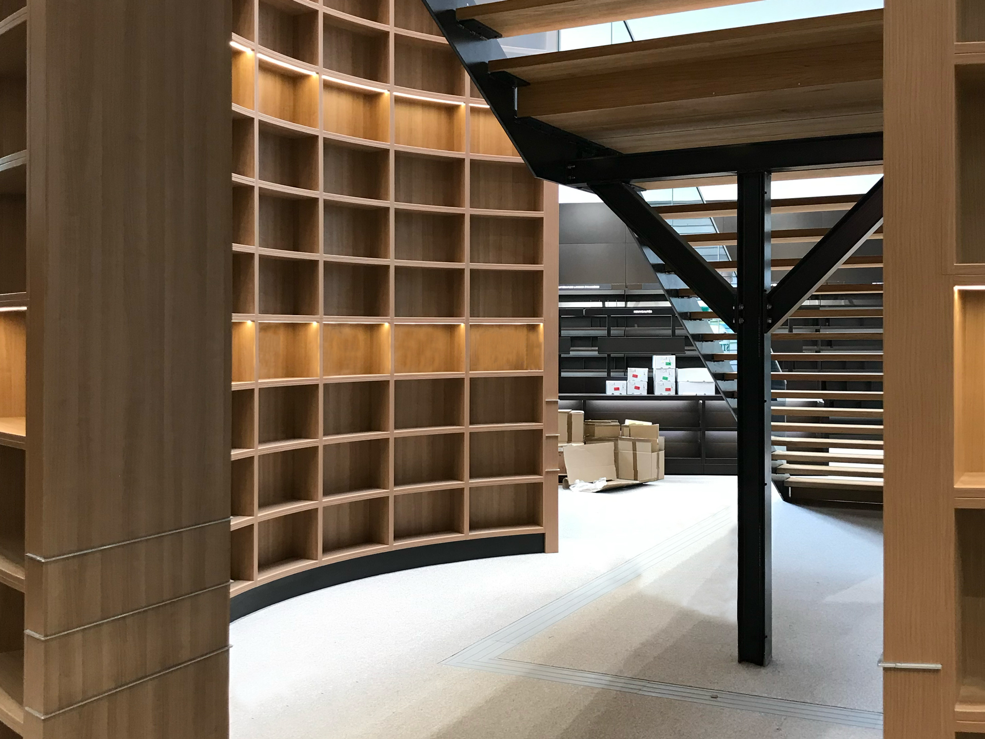 Livraison et installation de l’ensemble de la bibliothèque monumentale au centre E-Leclerc de Thionville.
