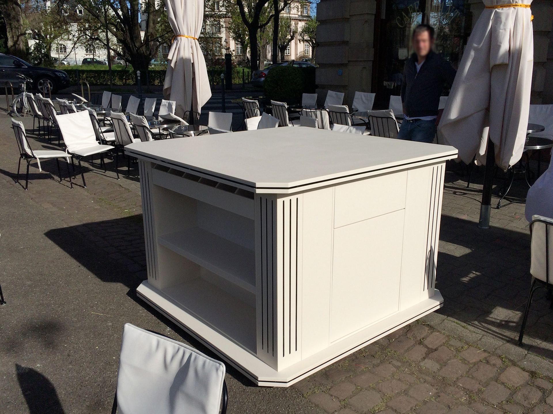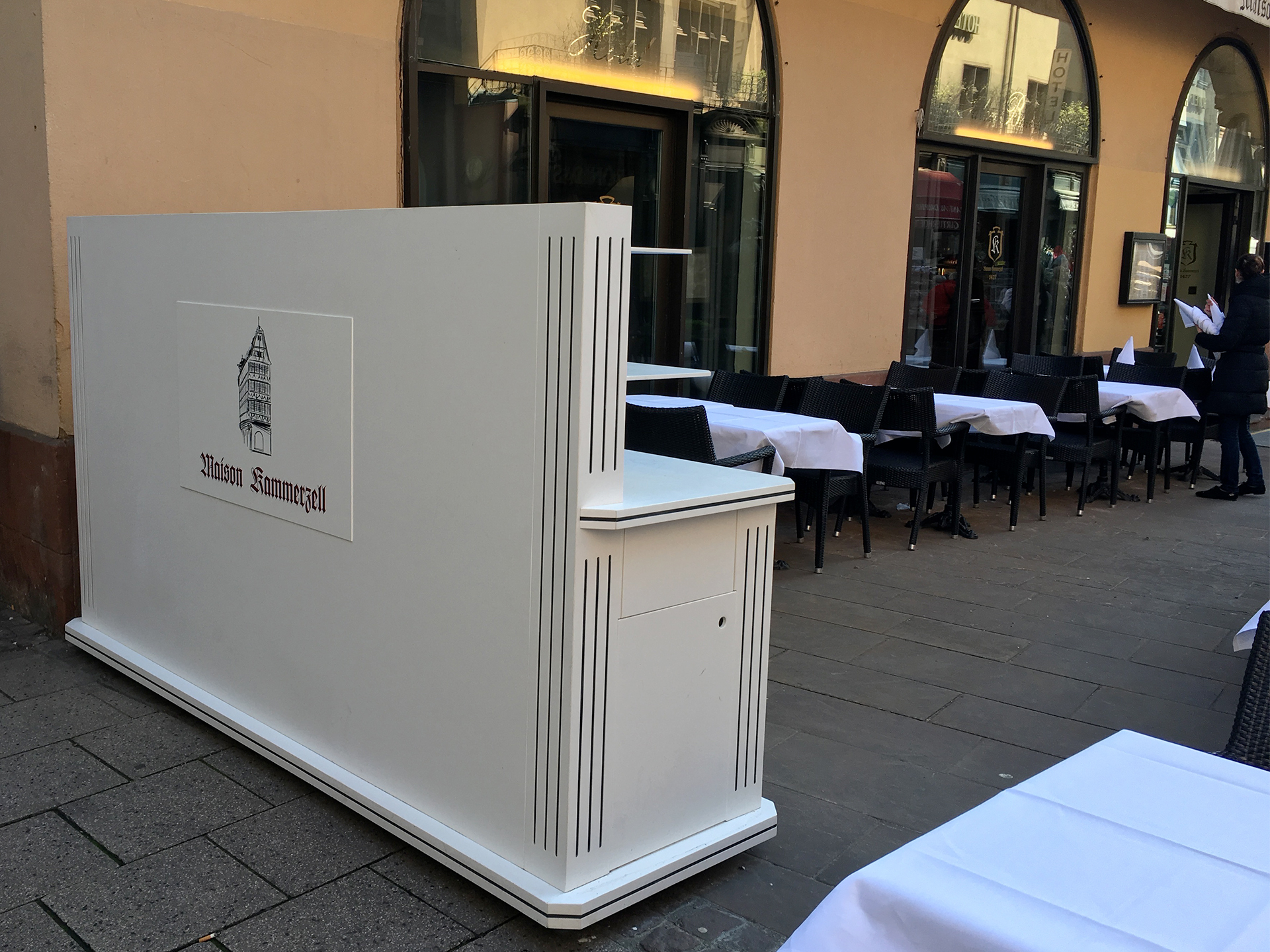 Le mobilier de terrasse de la Maison Kammerzell (Strasbourg) a été conçu pour durer. Une fabrication sur-mesure, en respectant le design et les dimensions souhaités par le client, a été assurée à partir de matériaux durable et haut de gamme.