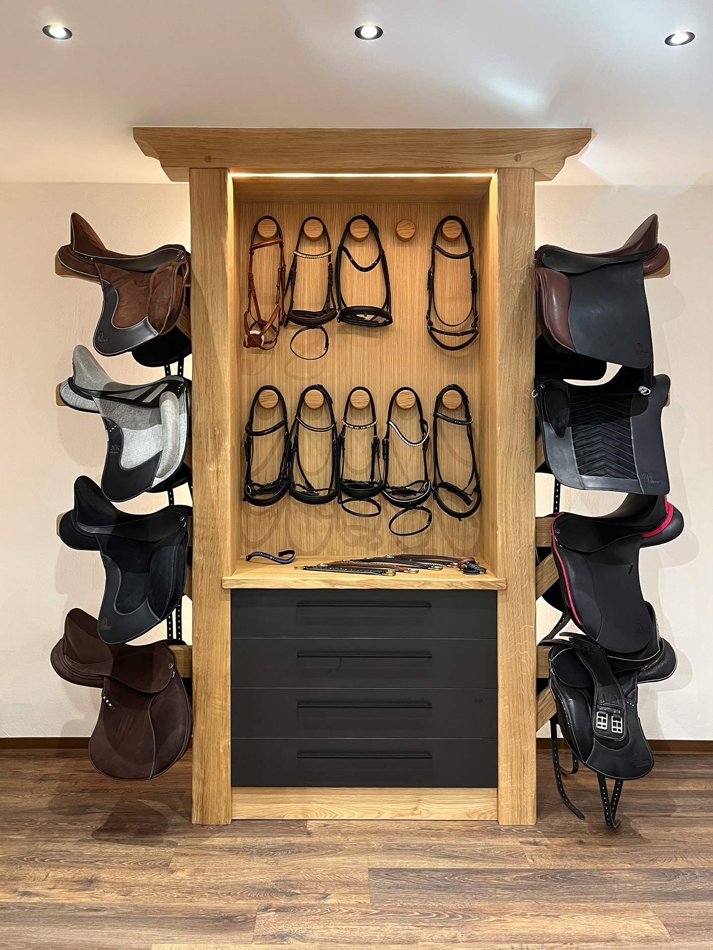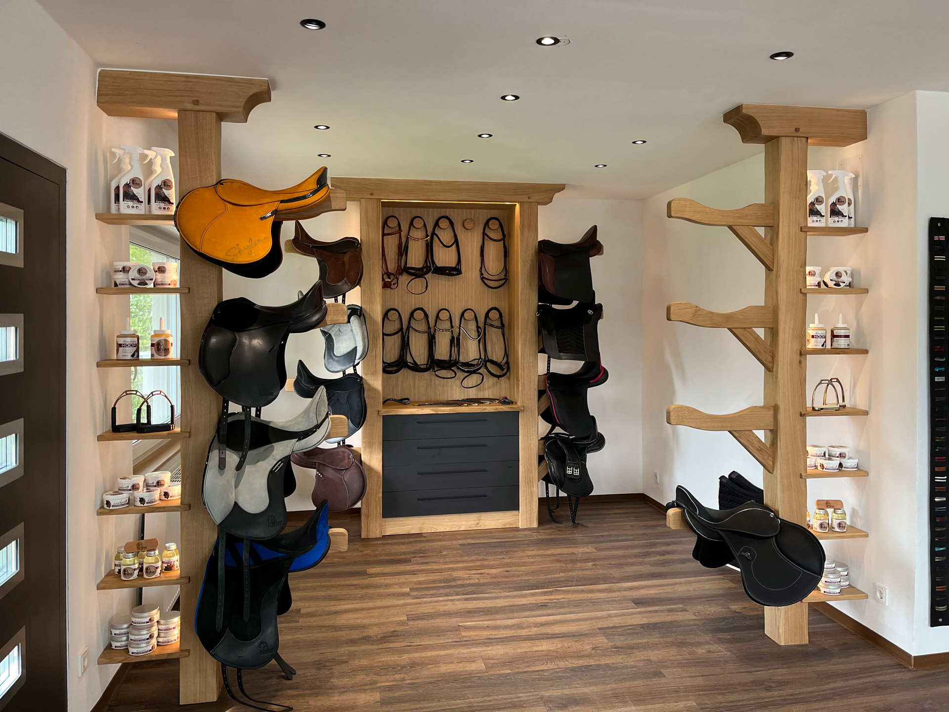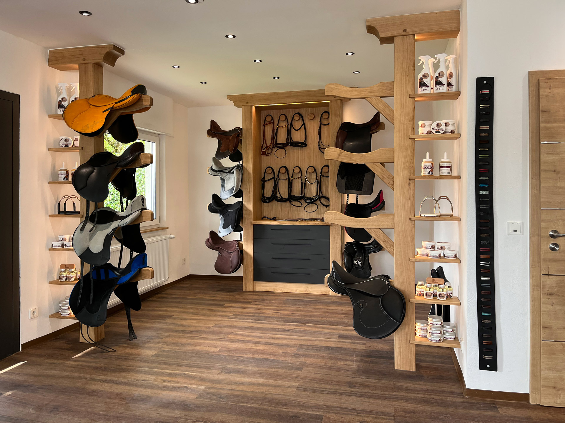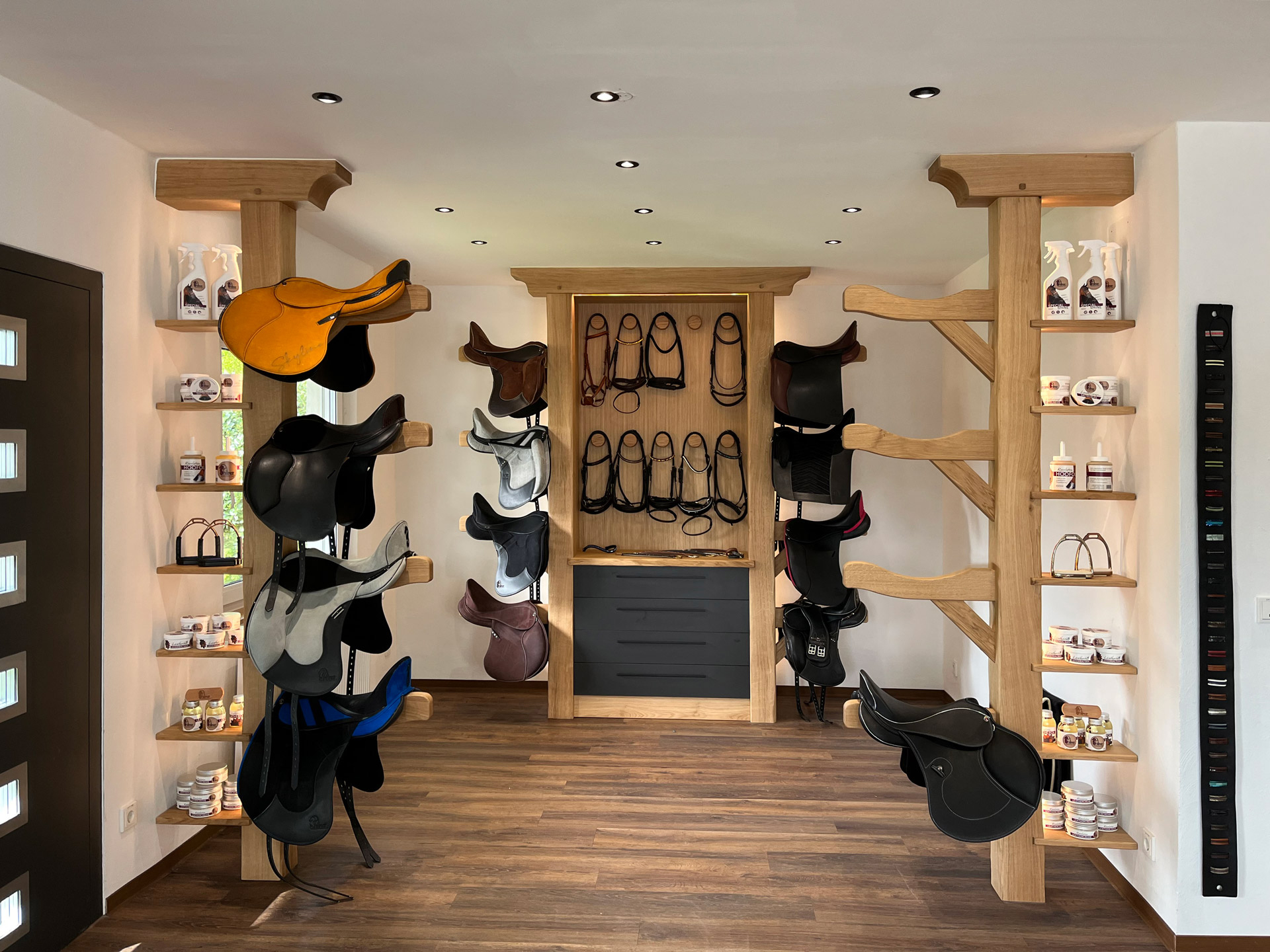 Aménagement d’un show room dans le magasin d’un fabricant de selle de dressage sur-mesure.